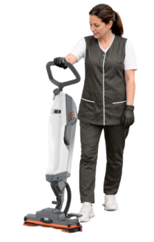Die handlichsten Scheuersaugmaschinen auf dem Markt, mit nur einer Hand souverän bedienbar. Sie vereinen die Leistungsfähigkeit einer professionellen Maschine mit der Flexibilität eines herkömmlichen Mopps und gewährleisten durch den einfachen Akkumulatoren-Wechsel einen praktisch ununterbrochenen, täglichen Einsatz. Die einzigartigen Bediengriffe ermöglichen eine uneingeschränkte Bewegung der Maschinen um 360°. Die unglaubliche Wendigkeit der Maschinen erleichtert die Reinigung von Bereichen, die für herkömmliche Maschinen schwer bzw. nicht zu erreichen sind, wie z.B. Bereiche unter Tischen, zwischen Stühlen, Spül- und Waschbecken usw. Lieferbar mit Bürsten und/ oder Padmitnehmern (Treibtellern).